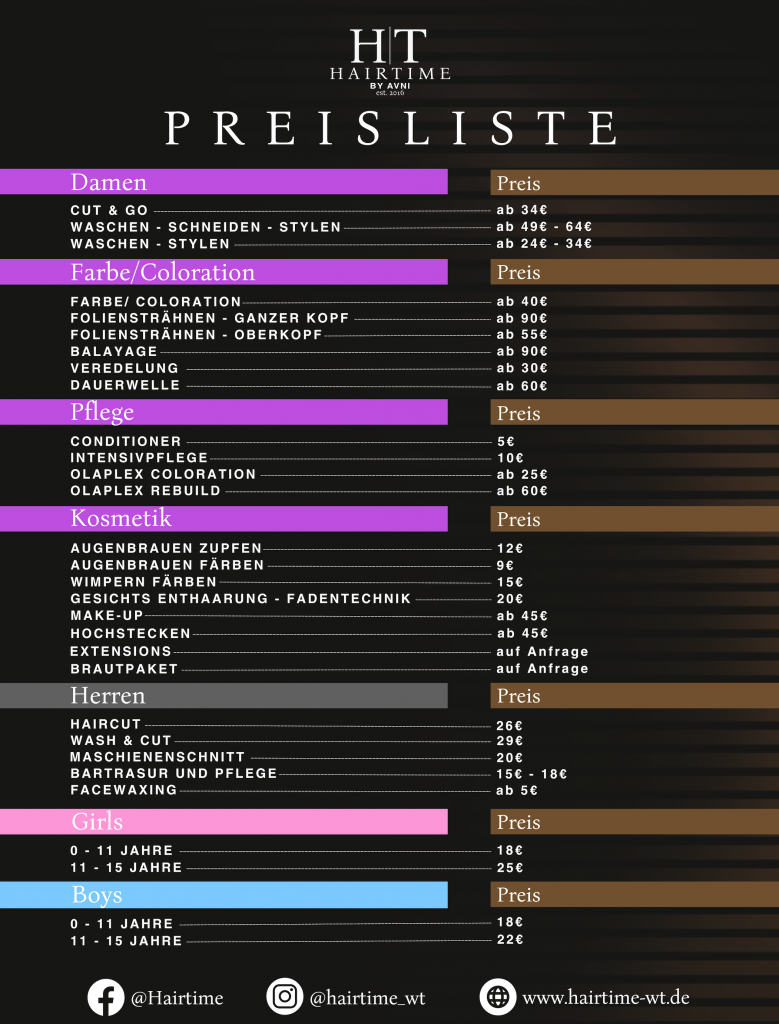 Hairtime bietet eine Fülle von erstklassigen Services für Frauen und Männer an. Unsere talentierten Stylisten und Coloristen beherrschen die neuesten Trends, um Ihnen einen makellosen Look zu verleihen.